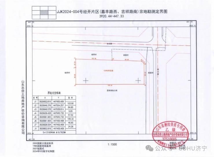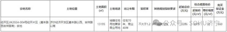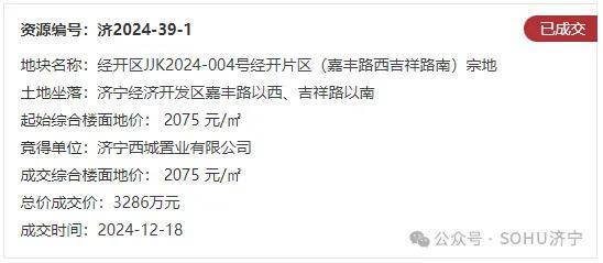地块名:经开区JJK2024-004号经开片区(嘉丰路西吉祥路南)宗地【济宁西城置业有限公司竞得】