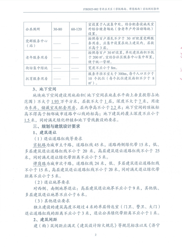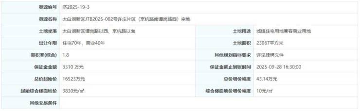 地块三:太白湖新区JTB2025-002号许庄片区(京杭路南谭岗路西)宗地【济宁招华房地产开发有限公司竞得】