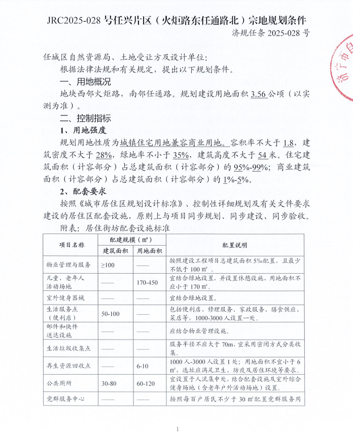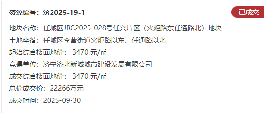 地块一:任城区JRC2025-028号任兴片区(火炬路东任通路北)地块【济宁济北新城城市建设发展有限公司竞得】