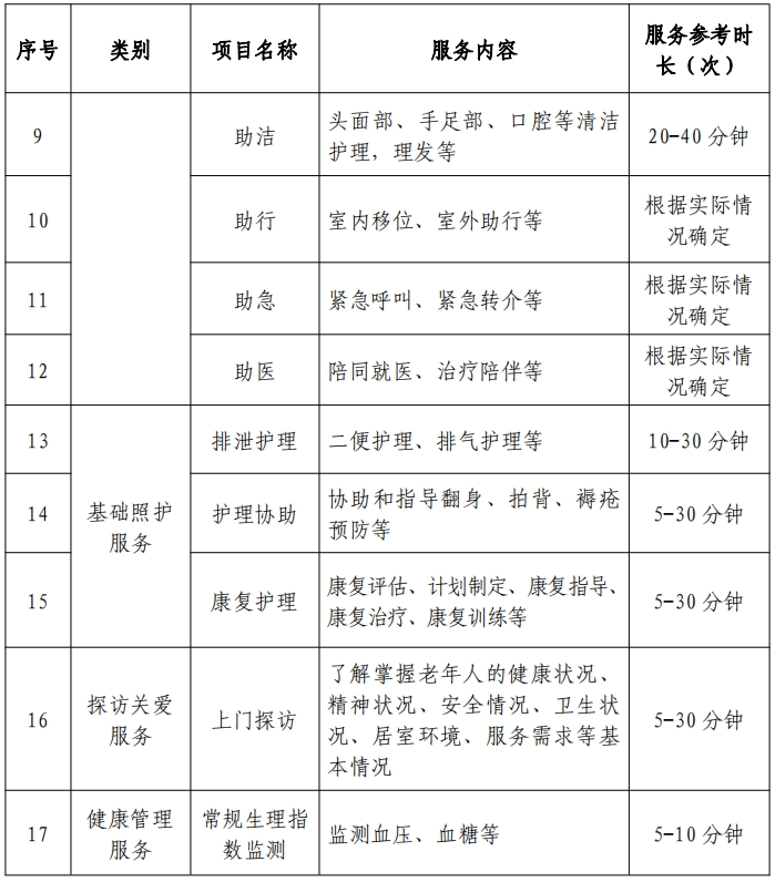 山东补贴项目范围参照民政部确定的范围,结合山东实际确定了17项补贴项目。除涵盖老年人日常照护所需的居家、社区、机构养老服务,如长期入住、短期入住、日间托养、助餐、助浴、助洁、助行、助急、助医之外,本次补贴还将一些失能老年人需要的日常护理项目,比如康复护理、护理协助、健康管理服务等纳入补贴范围。