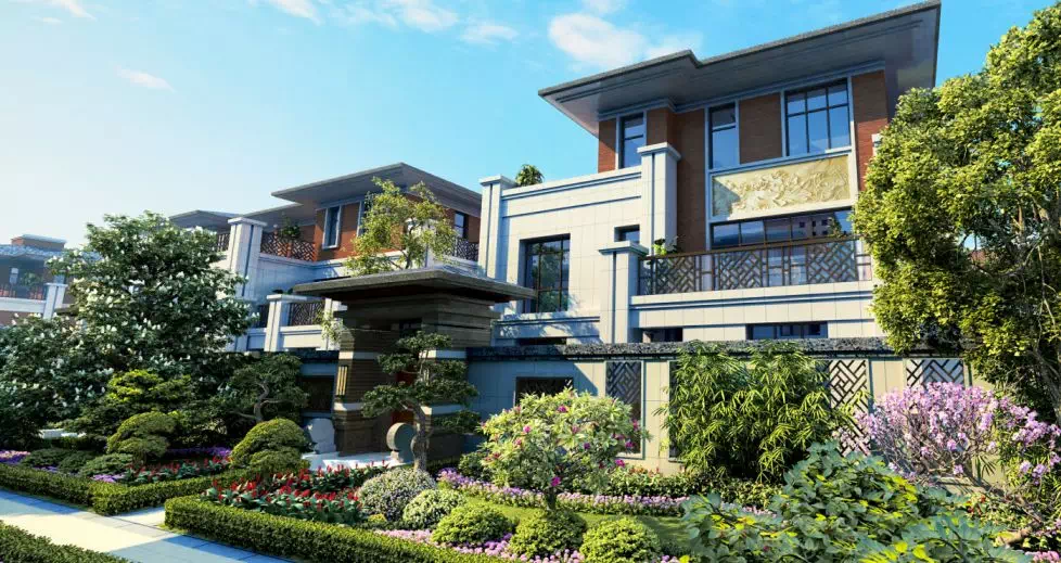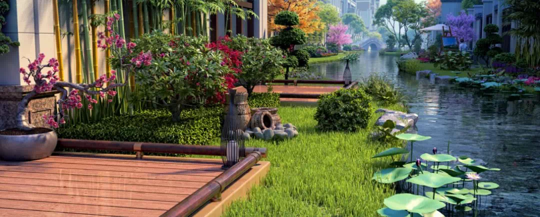 南北中央水系景观带及东西两条水系景观轴贯穿园区