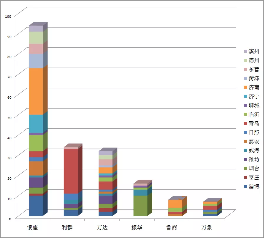 初步统计,银座在山东16个地市布局了94个项目。