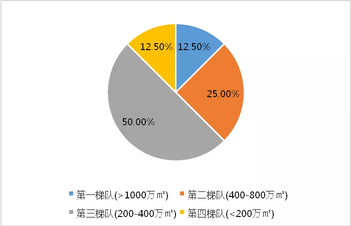 排名前列和第四梯队城市数量相同,仅有2个,占比为12.5%。