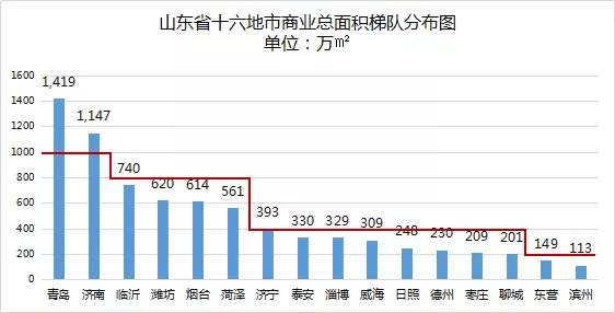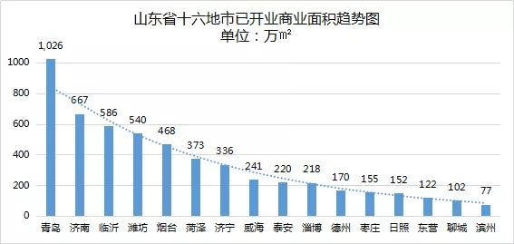 山东的龙头城市青岛、烟台的商业总面积在全国处在中等水平。