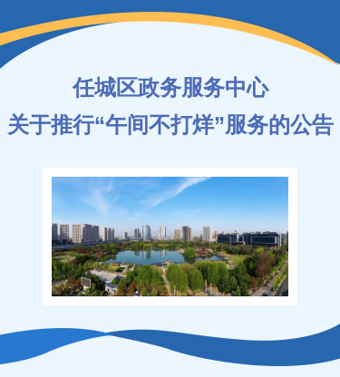 为深入贯彻落实国务院关于优化政务服务、提升行政效能的决策部署,着力解决企业群众“上班没空办、下班没处办”的现实难题,任城区政务服务中心在已开通预约服务的基础上,进一步拓展服务范围,全面推行“午间不打烊”服务机制(试行)。现将有关事项公告如下: