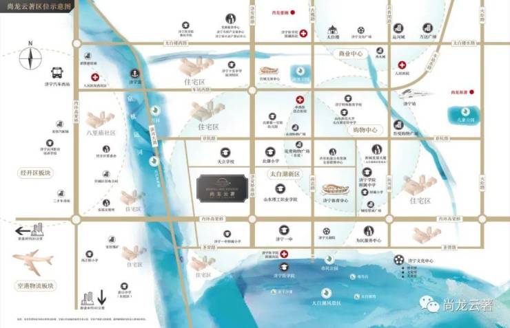 在济宁政府提出“东拓、西跨、南连、北延”的发展战略下,城市中心向南扩张链接,凸显了太白湖新区“一核引领”的地位。太白湖新区久蓄的能量澎湃迸发。作为“行政商务中心、科教文化基地、休闲度假胜地、生态宜居新城”,太白湖新区拥有繁华的生活配套,承接交通发展红利,商业中心、文化中心、教育中心的资源与功能实现均在此集中,实现稀缺资源的占有与生活方式的改变。