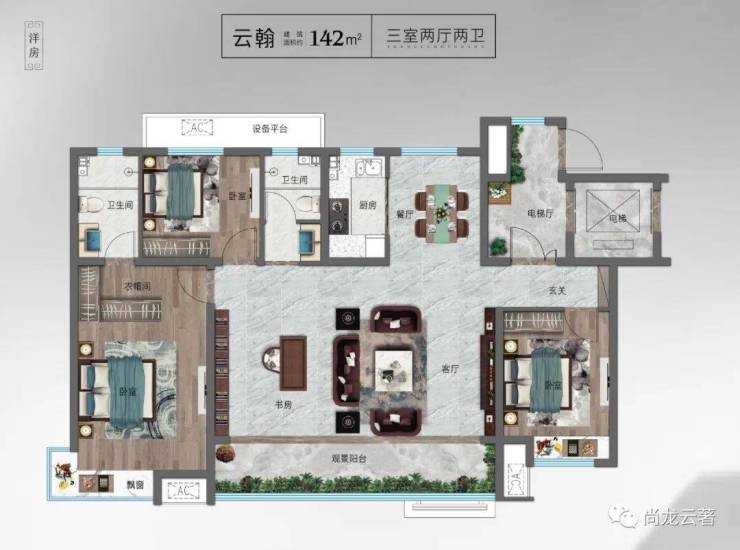 在产品设计方面,尚龙云著倾注更多心血。多年的精造设计经验之下,建面约120-142㎡的宽厅户型,空间体验感完美契合现下区域发展过程中的刚需、改善置业需求。