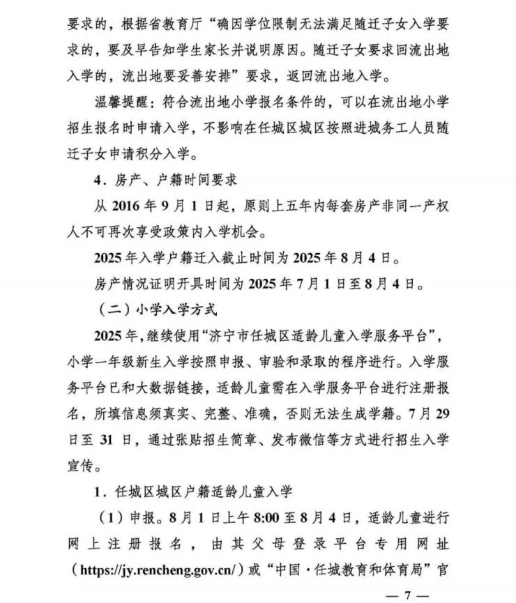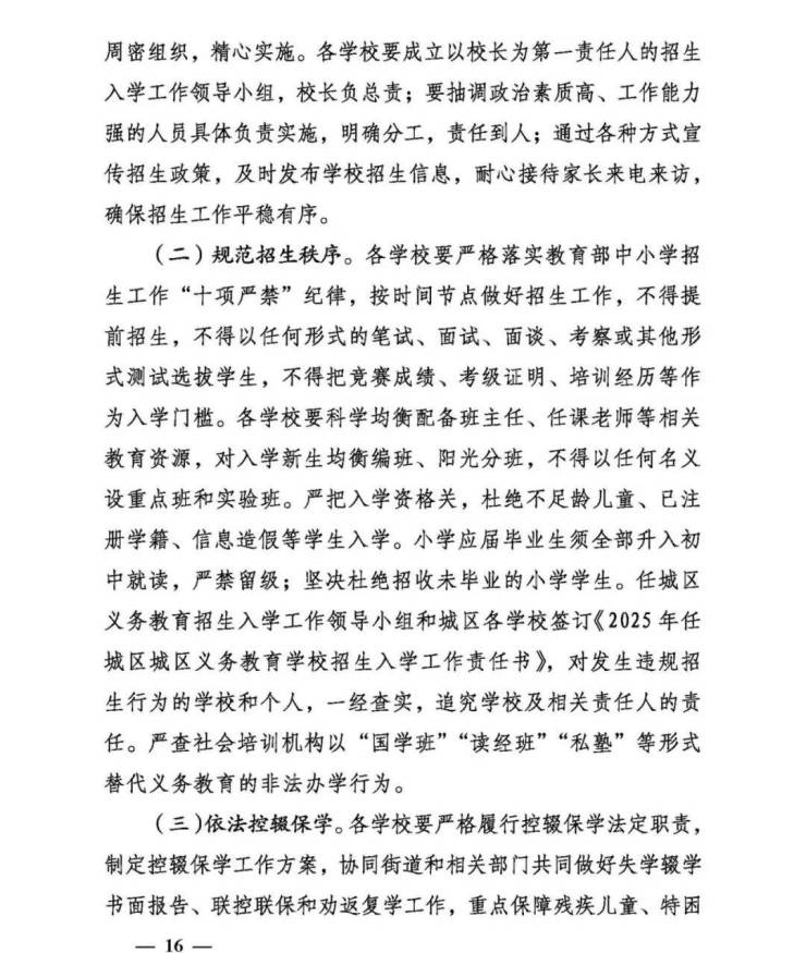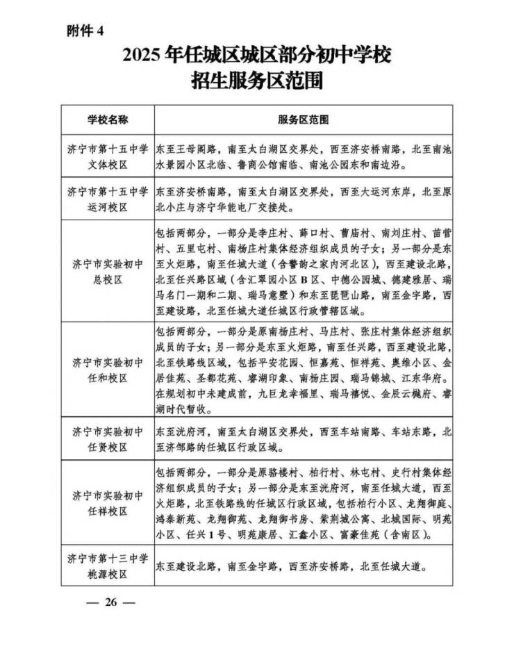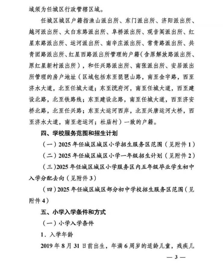 近日,关于2025年任城区城区义务教育学校招生及管理工作的意见发布。为保障2025年任城区城区适龄儿童少年依法接受义务教育权利,根据国家省市义务教育学校招生入学法律法规及工作通知要求,结合任城教育实际,并经区政府批准,特制定本意见。