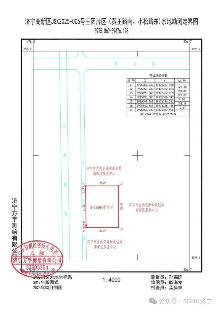 地块五:济宁高新区JGX2025-006号王因片区(黄王路南、小松路东)宗地【山东宇傲工程机械有限公司竞得】