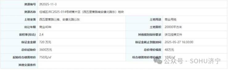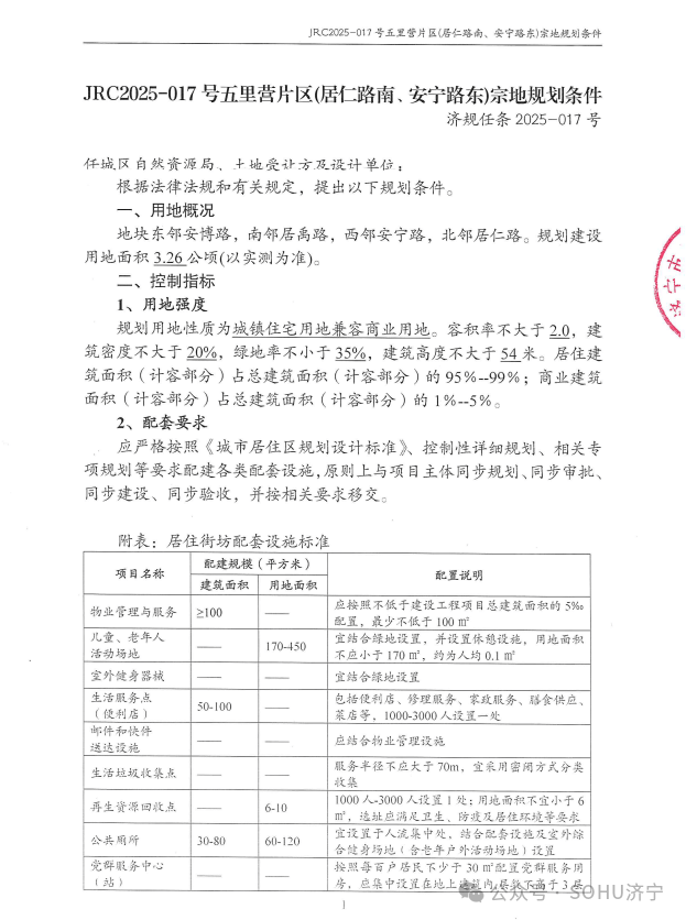 地块一:任城区JRC2025-017号五里营片区(居仁路南安宁路东)地块【济宁云拓置业有限公司竞得】