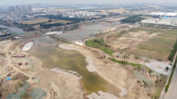 济宁高新区蓼河新区管委会综合处副处长缪小龙:“目前鸿雁湖已完成土方开挖及外运,驳岸整形已基本完成,园建景观、绿化种植正加快推进。”