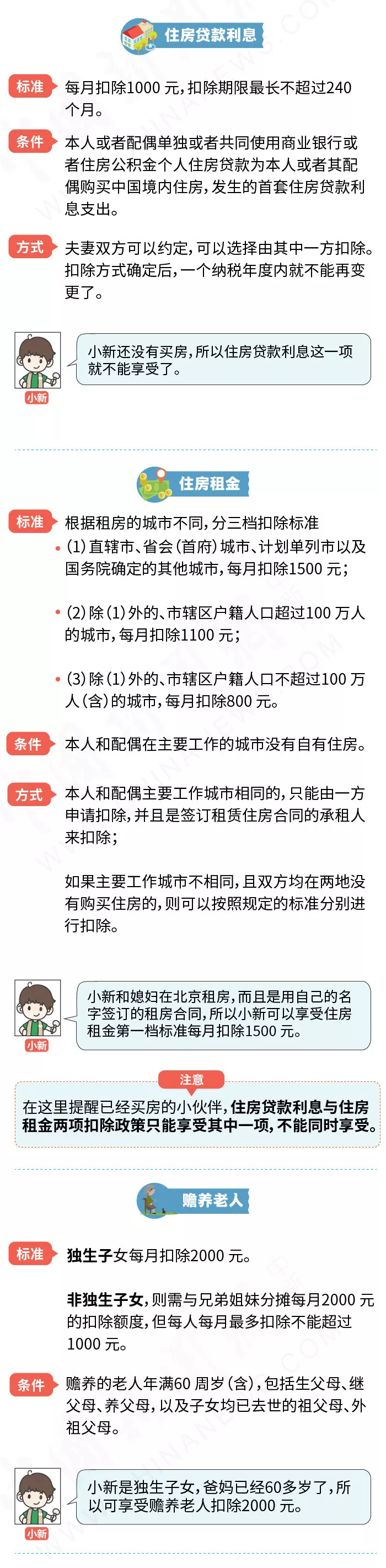 一是对条件。就是将自己的个人情况与6项专项附加扣除的条件对照一下,看看自己是否符合扣除的条件,符合几项,比如子女是否处于受教育阶段,老人是否已经达到60岁,在自己工作的城市有没有贷款买房或者租房等。