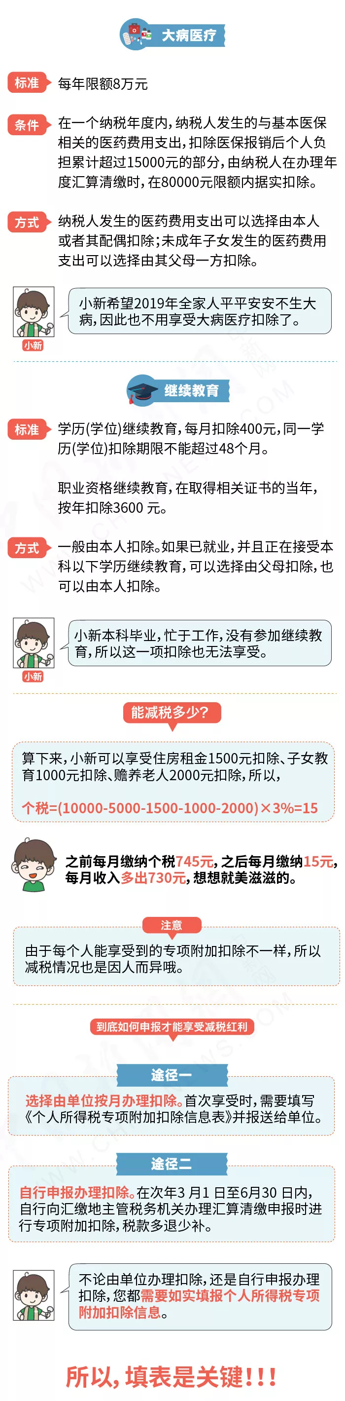 电子和纸质信息表都可以在税务局网站上下载。其中,选择在扣缴单位办理扣除的,可以直接将纸质或者电子表提交给扣缴单位财务或者人力资源部门,也可以通过手机APP或网页填写后选择推送给扣缴单位,这样单位每月发工资时就可以办理扣除,就可以享受了。如果想直接向税务机关申报,可以在第二年汇算清缴时将有关信息提供给税务机关后办理退税。