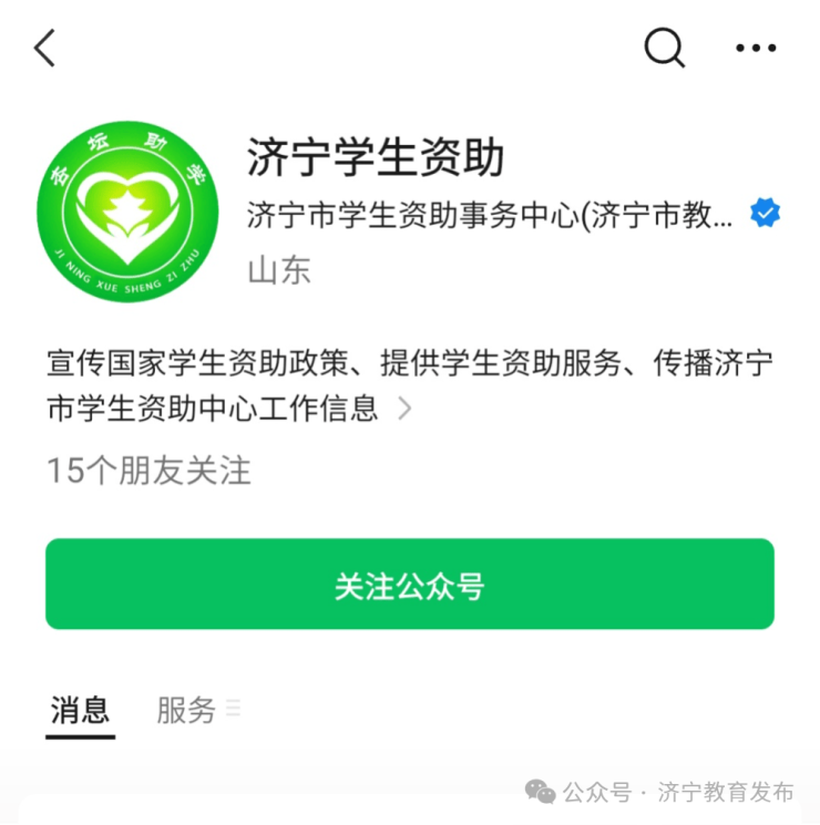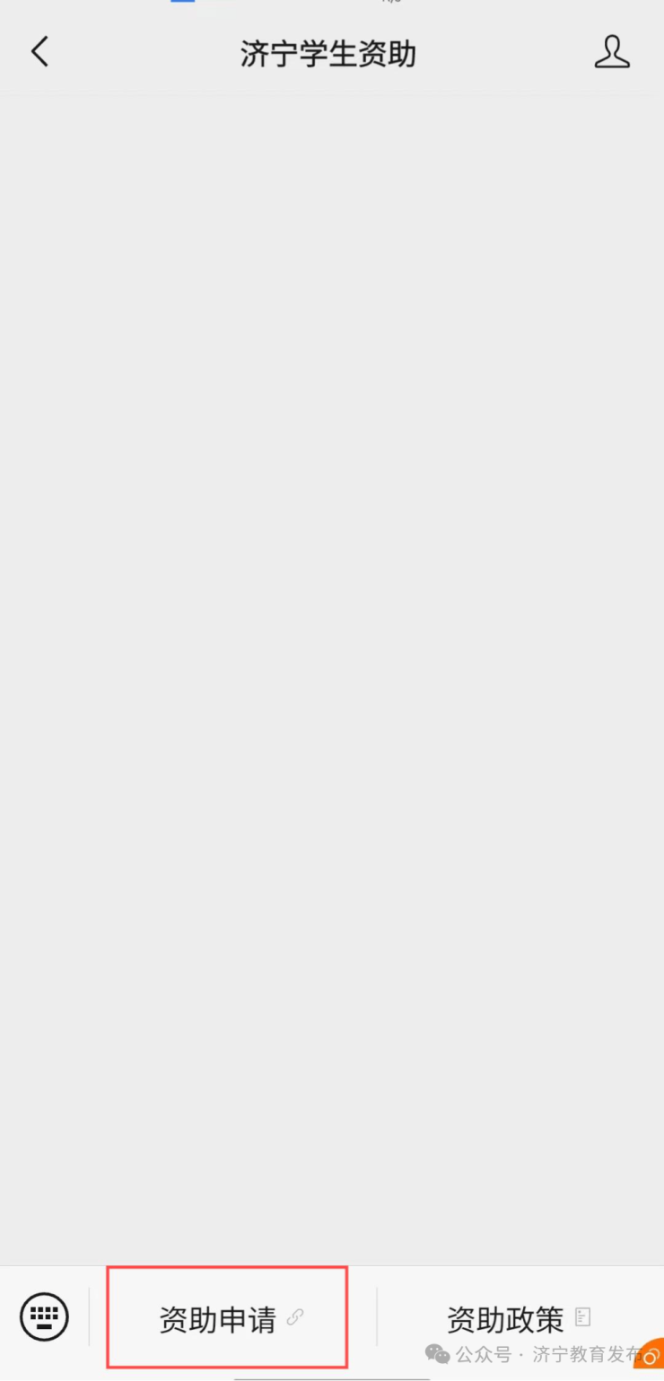 进入“济宁学生资助”微信公众号,点击下方“资助申请”菜单栏进入申请平台。