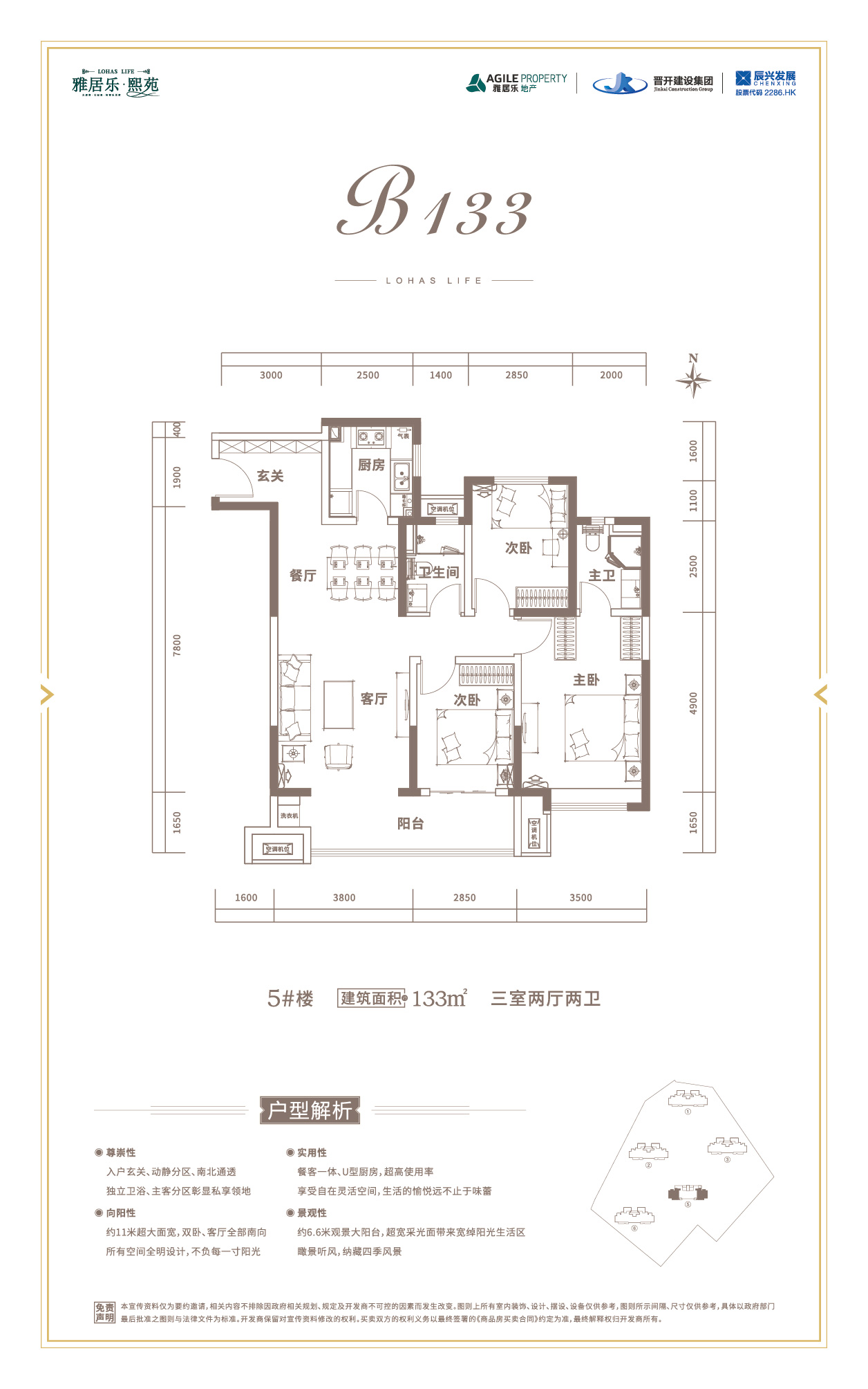 3室2厅2卫-1/2/3/6#楼133㎡户型