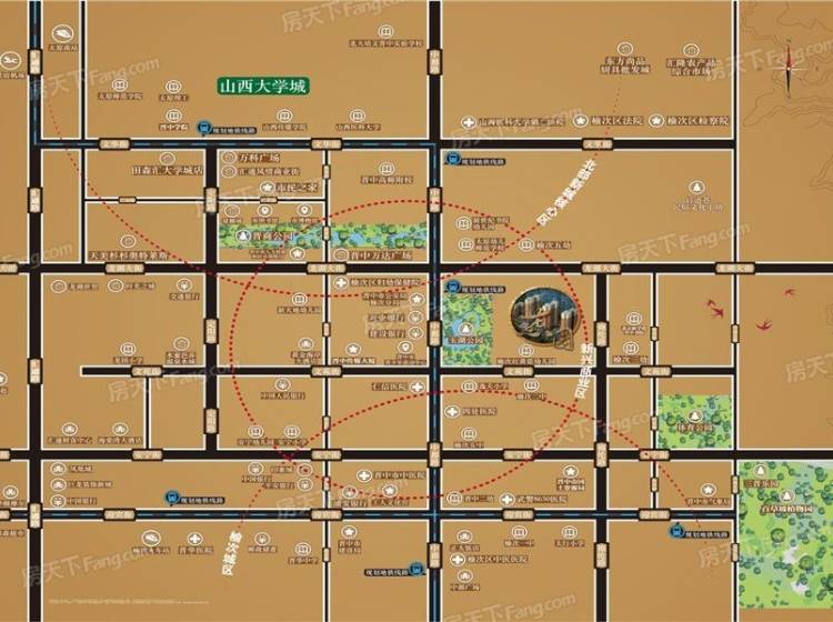位于榆次区文苑街与锦纶路交汇处西北角,原王湖村拆迁改造项目。北上龙湖街直通太原,南达榆次老城,交通地理位置优越。