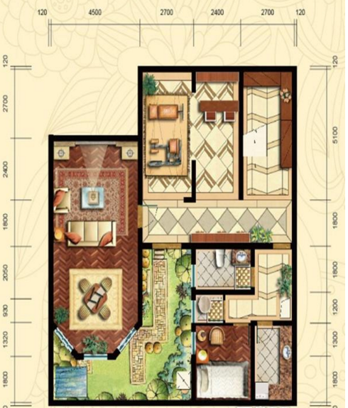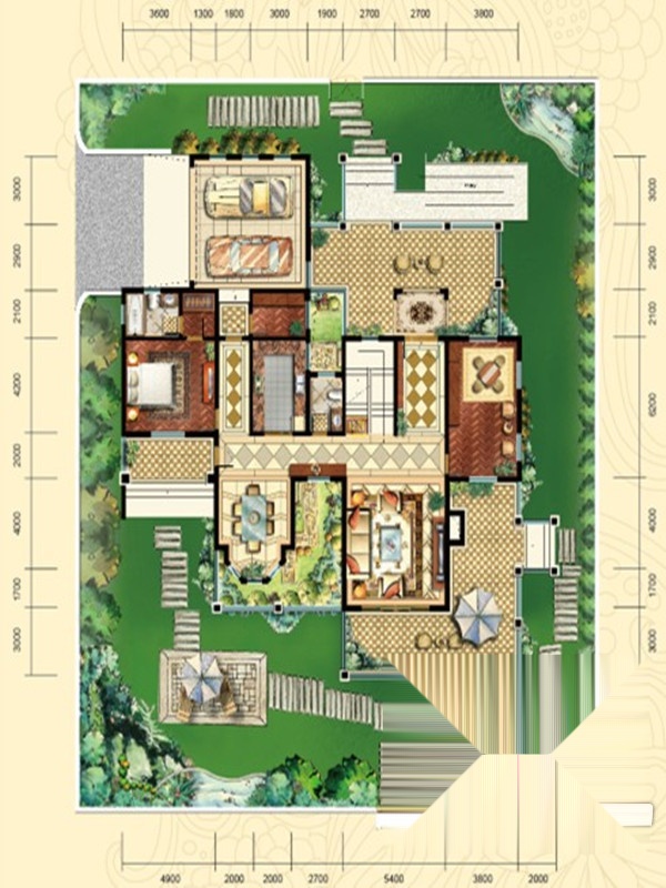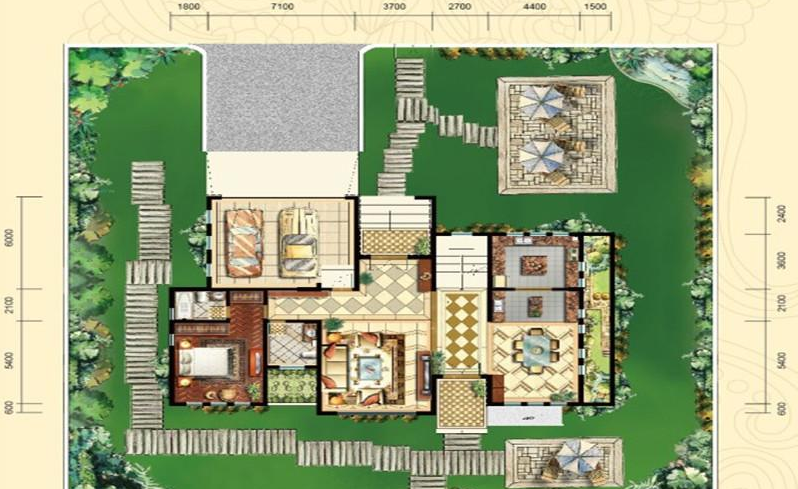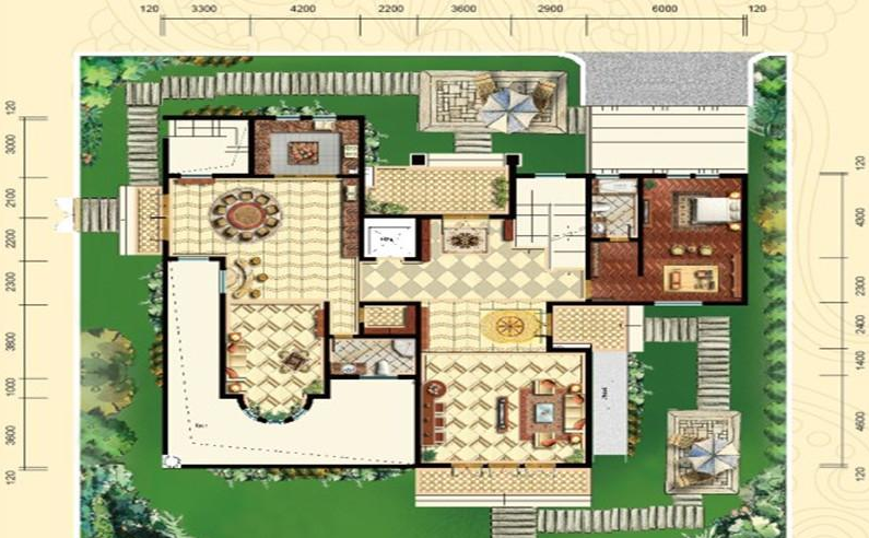4室4厅4卫-和式大院G8户型一层平面图