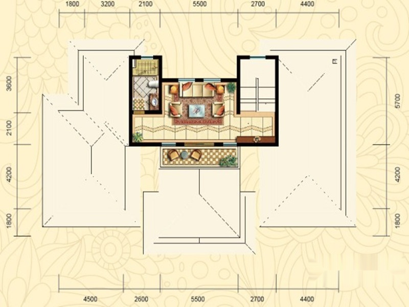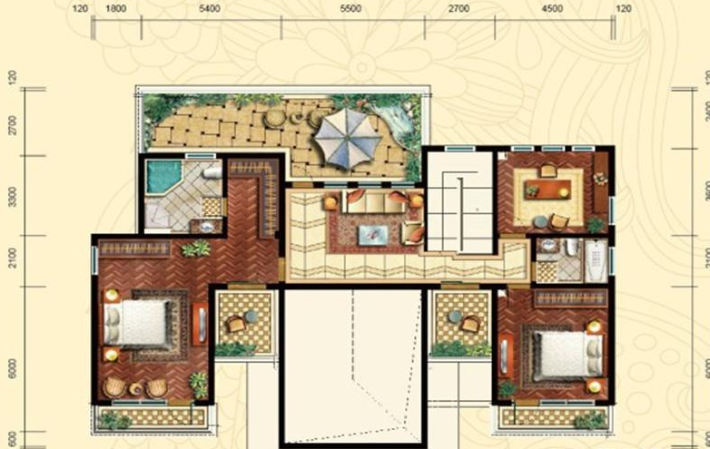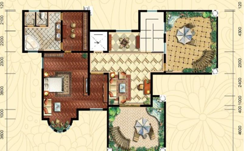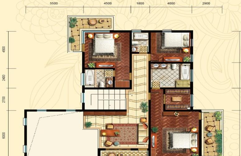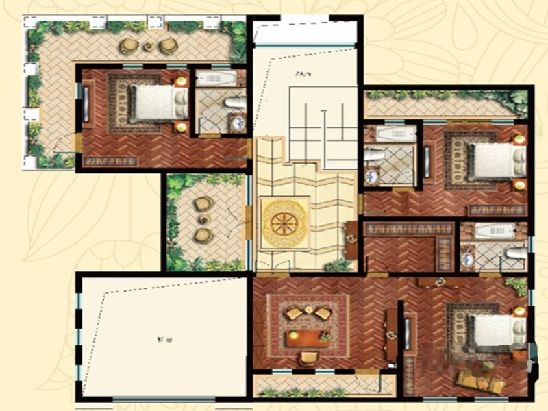 3室4厅4卫-和式大院A1户型二层平面图