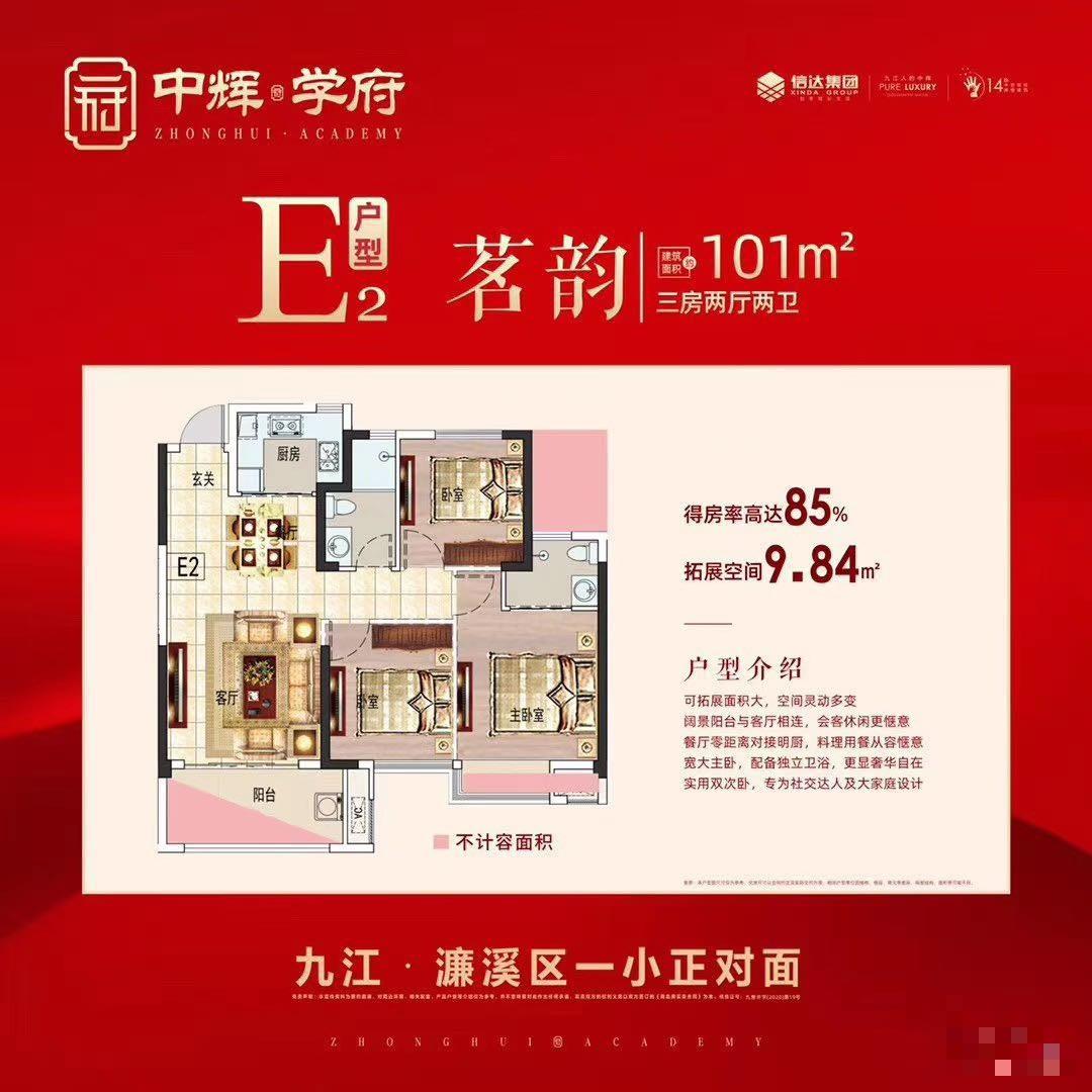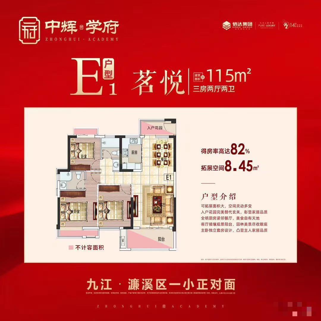 ⒈规划设计“以人为本”,创造一流的人居环境。 ⒉面向现代化,高起点开发,与城市整体有良好结合,形成合理的功能分区和道路布局系统,创造布局合理、交通便捷,环境优美的高质量现代化居住小区。 ⒊结合地区现实条件,充分利用地块的地理位置优势,合理规划不同物业组合,适应市场需求。 4.规划理念、目标:大景观、大视野,高品质精致居住产品。规划坚持社会、经济、环境效益的均好性原则。充分尊重当地人居生活习惯,注重以人为本的原则。坚持可持续发展,将空间布局与自然环境及地域人文相结合。 将自然生态环境引入社区空间,倡导健康人居的生活理念。以围合式大景观社区为规划手法在有限的空间中尽可能的将景观面做大、做足,在满足日照要求的前提下,让社区的住户景观受众面做到优质。本案规划及建筑设计致力于营造一种精神家园的归属感,注重社区整体居住品质及文化氛围。同时结合绿地景观有机组织社区人行流线,在社区公共空间与半私密空间中制造诸多能让社区邻里偶遇、交流的节点,为促成社区邻里的交流和社区和谐氛围的营造提供可能。 中辉学府的园林为新中式风格,借鉴吸收古典园林中皇家园林的均衡、对称,江南园林中的小巧奇特,错落有致,并兼顾现代人居对自然生态和高品质生活环境的追求,打造奢华内敛、自然清新、淡雅脱俗的学府园林。 项目园林分为四个组团,沿中轴线由深入浅分布,寓意人生中的四个重要阶段:人生就像海边拍击的浪花,曾经跻居大海、也曾涛澜汹涌、有过澜倒波随,但最终都将归于那一方宁静的港湾,这也是项目园林设计理念,以围合式的景观规划手法,在有限的 社区空间中尽可能将景观做大、做足、做深,充分展现优质景观面。整体建筑排兵式布局,区域内楼栋由低到高层层递进,在空间区域上避免了如普通小区楼栋密布状态的封闭压抑,形成独具特色的半开放式围合景观。在造园的同时注重与外部环境的竖向结合,采用全方位式景观水体,大面积广场绿化空间,充分利用住宅之间的楼栋间距,加以花坛、水景、座椅、亭台修饰,设置尺度相宜、角度各异的赏景体验,让您正一步一景之间倏尔又遇见桃花源般的豁然开朗,打造纳藏花乡美景,拥揽湖畔清流的入户品质。项目还为业主精心打造了星级健身会所,在交付之后,这里将成为业主的人行主入口,二楼就是健身房。 开发商介绍 中辉集团是一家以房地产综合开发为主的企业集团,同时涉及物业管理、金融投资、国内贸易等经营领域。于2007年进驻九江,并于今年正式更名为“信达集团”。集团秉承“打造精品社区,引领住宅潮流”的产品理念和市场定位,以国际化视角在九江先后开发了公园1号、阳光国际 、中辉世纪城、中辉凯旋城、中辉国际一期、中辉国际二期等多个品质项目,以出色的品质得到8000多个家庭的一致好评和市场同行的广泛追捧。 2019年中辉载誉腾飞,以深耕12载更懂九江的雄心壮志,耗巨资打造中辉御龙湾和中辉学府两大全新升级力作,形成八子连城的战略格局,勾勒出了一幅宏伟的品质人居蓝图。 物业——物业:高档的社区肯定会有先进的物业服务,中辉学府专门聘请誉满中国的绿城服务为业主提供专属高端物管服务,让业主每一次归家都是享受。绿城服务成立于1998年,是一家具有国家一级物业资质的上市物管公司,21年服务遍及全国130多城市超2亿平方服务面积,是全国同行业中物业类型最多、服务区域最广、服务面积较大的物业服务企业之一,并多年获得“中国物业服务百强满意度先进企业”殊荣。