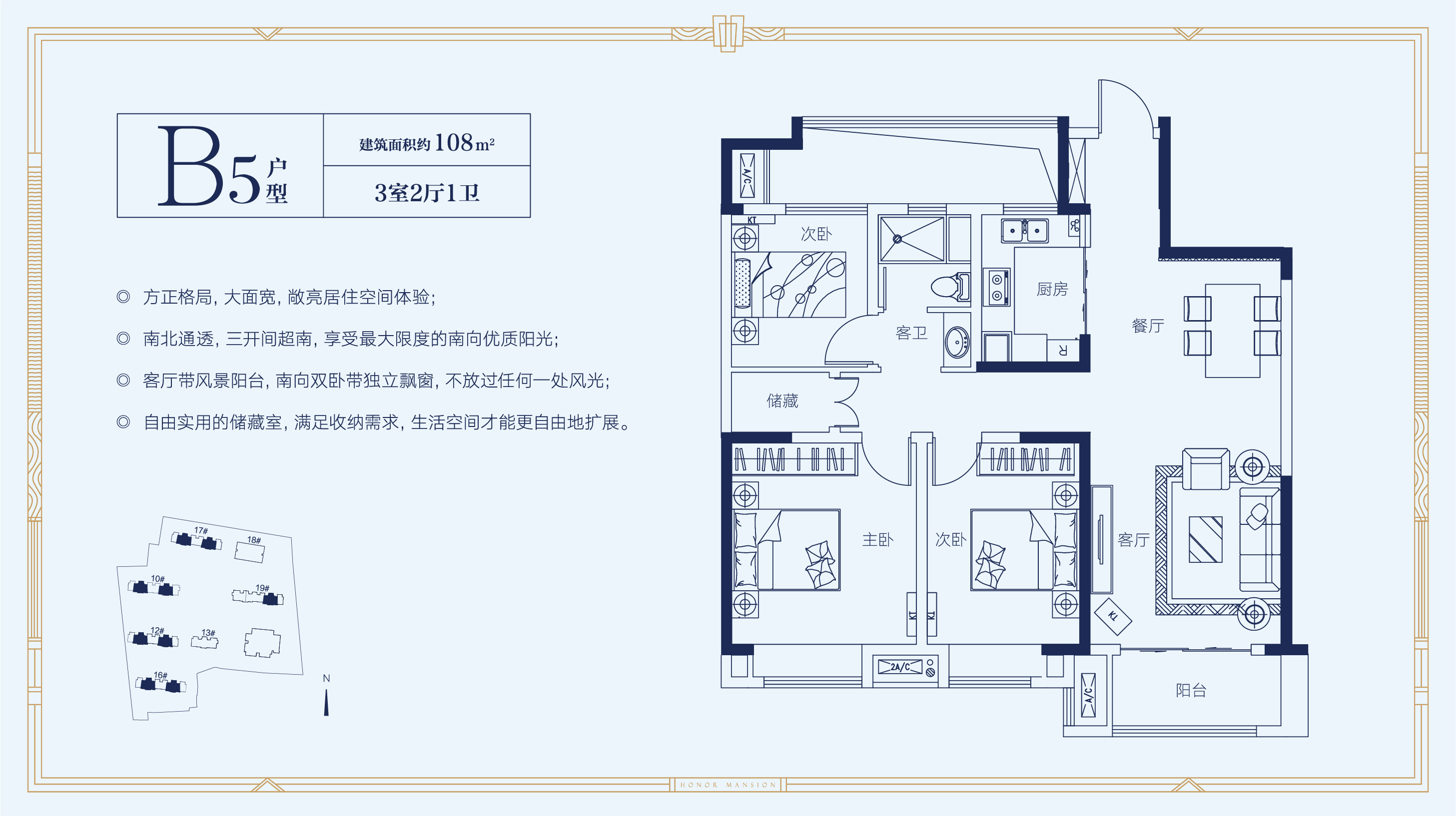 3室2厅1卫-B5户型108㎡