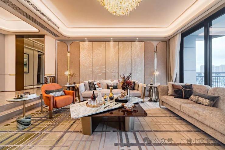 ✨客厅背景墙为阿玛尼底材刺绣墙艺,营造清雅美学。