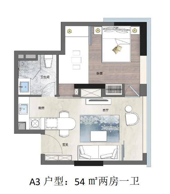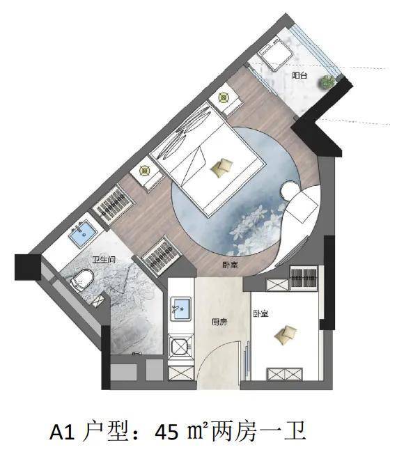推出面积:42㎡、45㎡的一房及45㎡、54㎡、60㎡的两房。