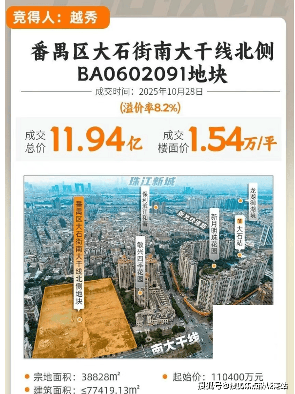 大石板块作为番禺连接海珠、天河的传统门户,近年加速城市更新。鸿图工业园旧改落地,标志着片区从工业遗存向高品质住区转型。越秀鸿璟台所处地块已完成征拆,权属清晰,为纯住宅用地,无复杂配建负担,开发纯粹度高。