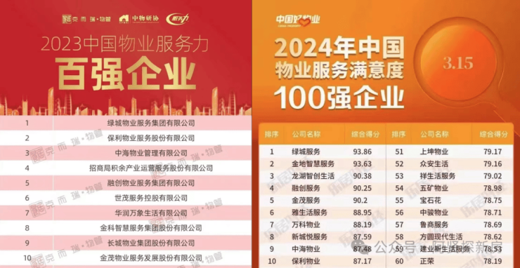 🔥2024年中国物业服务满意度100强企业TOP1(克而瑞)