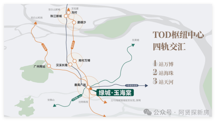 ◎出门即是番禺广场地铁站E口,作为18号线、22号线、3号线、17号线(规划中)的交汇站,轨道“黄金链”之上,通勤顺畅便捷