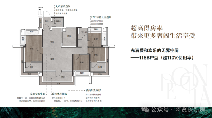 建面约118㎡(B户型) 4空间2厅2卫