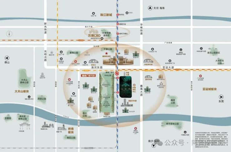 ◎ 尊踞区府正脉,直线距离番禺区政府约200米,坐享广州中轴上仅有的“区府+TOD+中央公园”三引擎合璧的超级中芯。税务局、检察院、财政局、教育局等行政机构环立,凝聚一城高端圈层