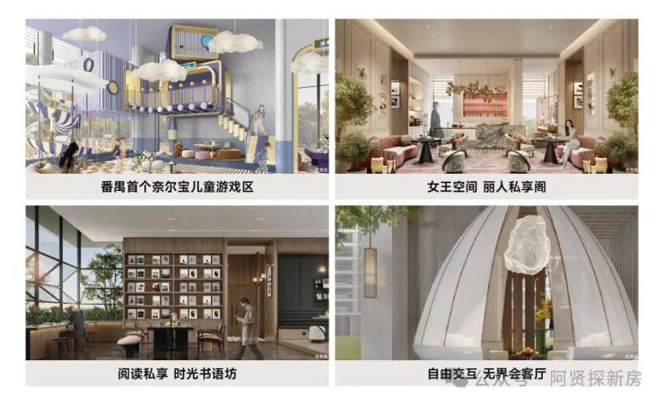 ◎规划打造四大主题架空层空间,涵盖儿童趣玩、邻里社交、休闲书吧、女王私享等全龄多彩锦盒