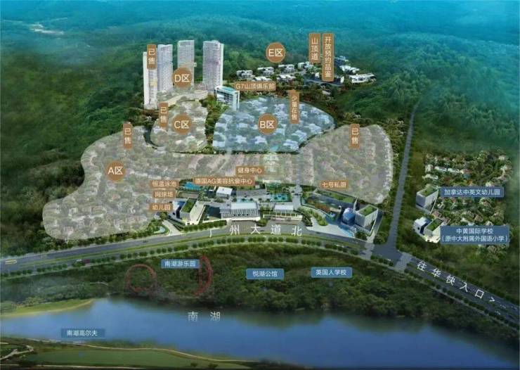 新天半山坐落于广州市白云区南湖4A级风景区旁,是天然卓越的养生佳地。整个项目总占地约23万㎡,容积率仅0.71,绿化率高达41.6%,项目兼具云山绿意和南湖的旖旎风光,诠释着居住品质的极致享受。
