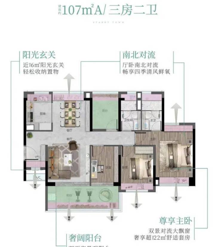 产品:全南向 86㎡/107㎡/125㎡三至五房