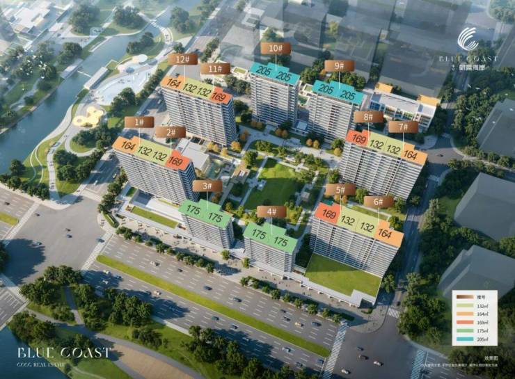 中交・蔚蓝海岸花园为纯改善,主打建面为132-164-169-175-205㎡的大户型,专梯专户保障私密,户户带庭院,还搭配LDKB设计、无界宽厅和南向大阳台。