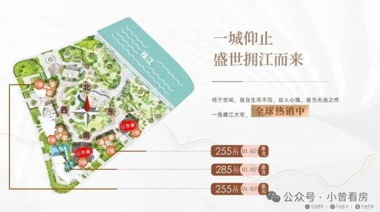 以超越时代的独特豪宅美学,秉持“云端生活”理念,建筑香槟金水波纹立面与珠江相映生辉,弧形落地玻璃为居者带来IMAX景观体验,使户户皆可饱览珠江盛景。