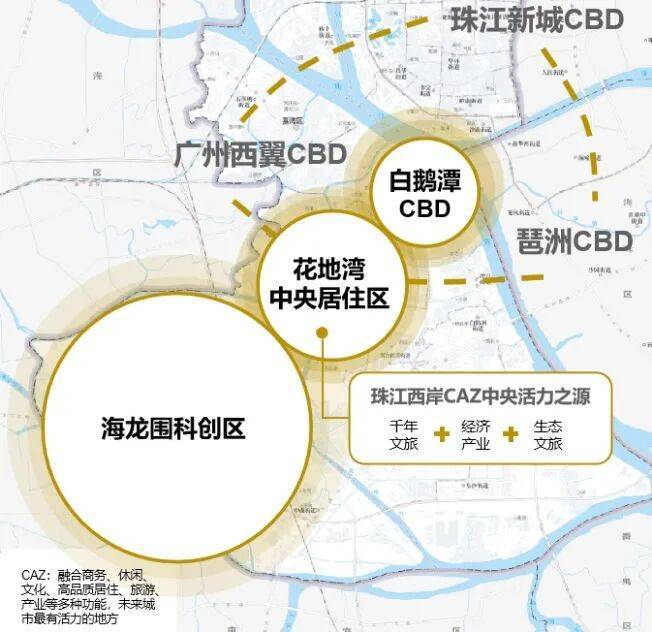 “十四五”蓝图之下,荔湾“一带两区”发展格局跃升为广州城市核心建设的关键一环。以“白鹅潭—花地湾—海龙围”三大板块联动,构筑“商、住、产”融合的现代活力新城,共同塑造珠江西岸CAZ(中央活力区)黄金三角——融千年文脉、强经济动能与优生态文旅于一体。