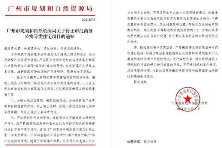 2024年4月2日下发《广州市规划和自然资源局关于停止审批商务公寓等类住宅项目的通知》,自通知日起严禁类住宅公寓开发❗