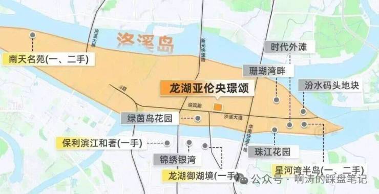 另一方面,地块所在的洛溪岛高端改善氛围浓厚,聚集了不少老牌豪宅。如星河湾半岛、南天名苑等等,加上洛溪片区已近20年没有新增宅地,项目入市后,将作为片区内首个容积率新规产品,产品层面在片区内基本没有对手。