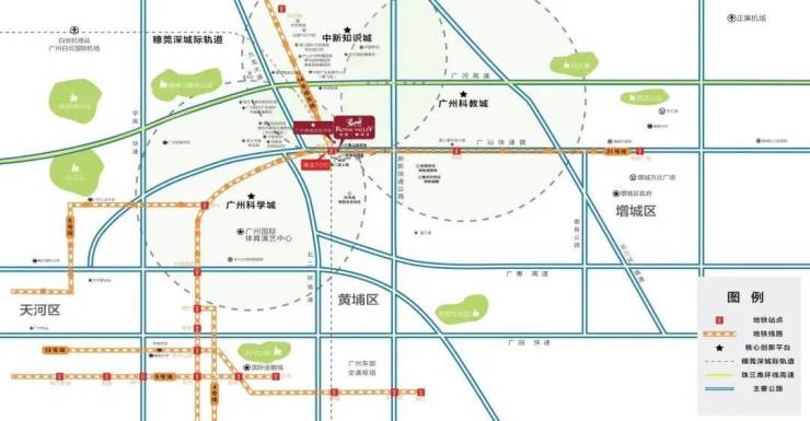 侨建·御溪谷地处广深科技走廊起始点的中新知识城南,地铁21号线与穗莞深城轨双线交汇之地,地铁口就在社区红线范围内,目前已全线通车。1站到镇龙,换乘快线2站地铁到天河(大观南路站),地段价值日益彰显。