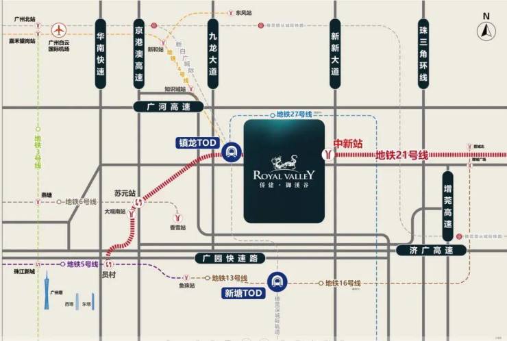 拥有四纵六横的交通网络,堪称广州东核心交通枢纽,是广州罕有的7地铁口上盖别墅物业。地处地铁21号线中新站之上,4站即达天河,1站可到镇龙TOD枢纽。咨询热线:15012627238 蔡经理