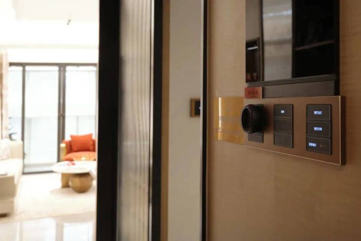 让人惊喜的是,每个户型都在入户玄关处都配备了智能化面板,一键控灯、新风系统、电动窗帘等配置一应俱全,甚至鞋柜内部还有杀菌消毒机。
