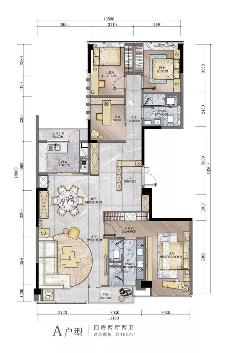 其带来的,还是建面约166-207㎡的大平层,以纯四房及一梯一户设计,带来纯粹的居住圈层。