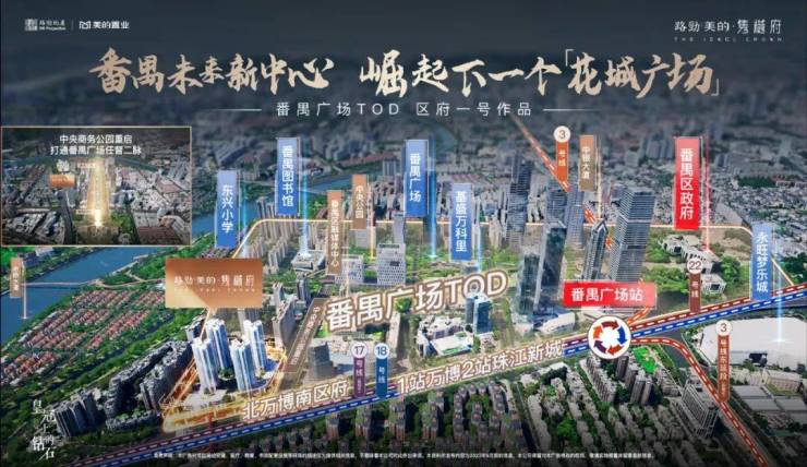 目前周边有约17万方永旺梦乐城和基盛万科里,未来,85万方番禺广场TOD规划,打造“超级枢纽+中央公园+地下商业”的模式,汇集休闲、餐饮、娱乐、文化等资源,定位“番禺未来新中心”,这座巨无霸会向上生长,打造约40万平巨量商圈,以260米的地标撑起城市天际线,又会向下扎根,深挖约18万平地下空间,造就一座地下都市。