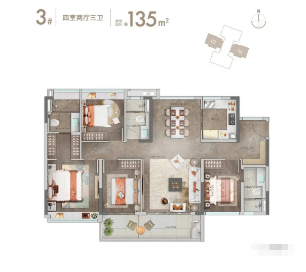 在户型方面,项目首推90-135㎡三房至四房单位,户型图如下: