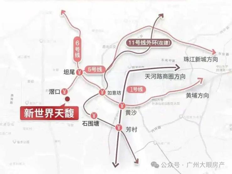 项目与5号线滘口站仅400米的距离,步行6分钟即可到达,12个站到达珠江新城,无需换乘,1个站换乘6号线以及11号线,去往越秀天河等广州核心区都非常方便,且地铁与项目之间还建了街区公园,为业主营造特有的归家仪式感
