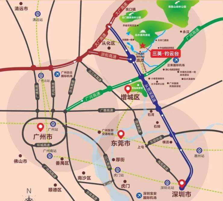 1、广州—京港澳高速—大广高速—派潭大道北—三英温泉度假酒店。