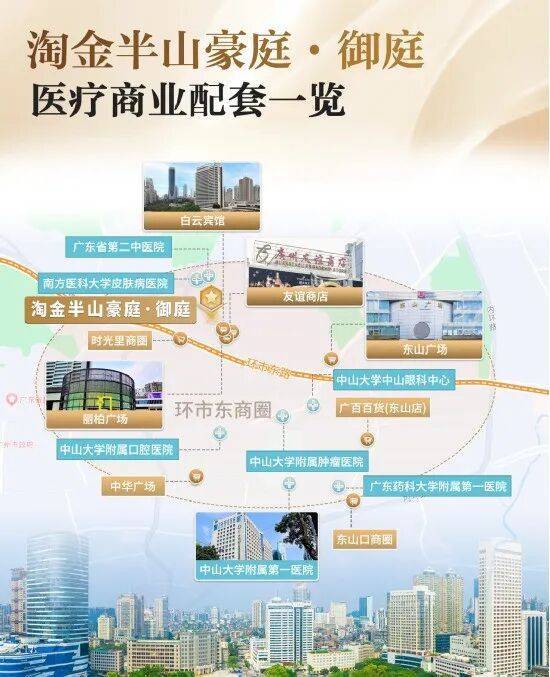 周边多家大型甲等医院为家人提供健康的保障,有省人民医院、中山一院、眼科医院、正骨医院、省第二中医院和广州国投悦康养老院等。