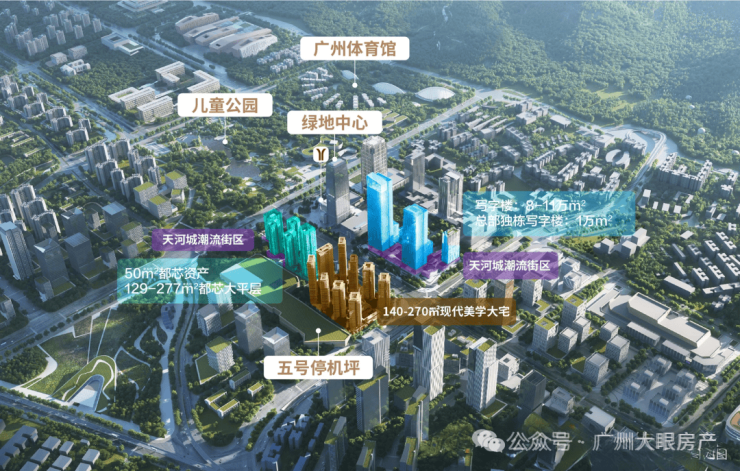 百亿都芯综合体【云翼】 值此1栋,建面约50-80㎡ 跃享封面资产,白云新城73万㎡都芯综合体头排封面。