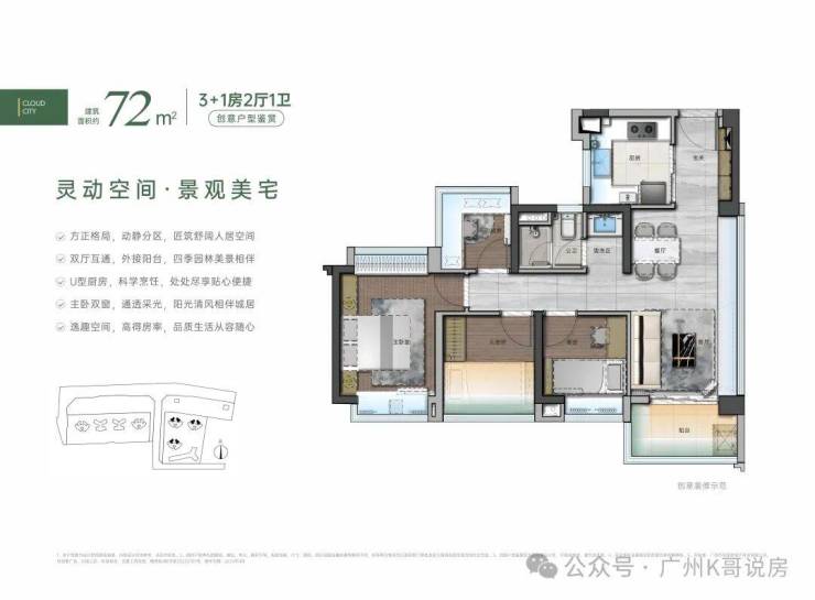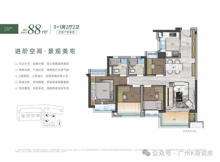 在售户型有72-88-105都是四房户型